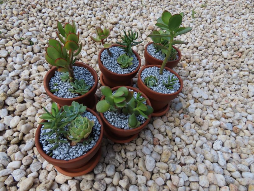 These potted succulents were re-potted and decorated by my hubby and our youngest son, so easy to do and they had fun.