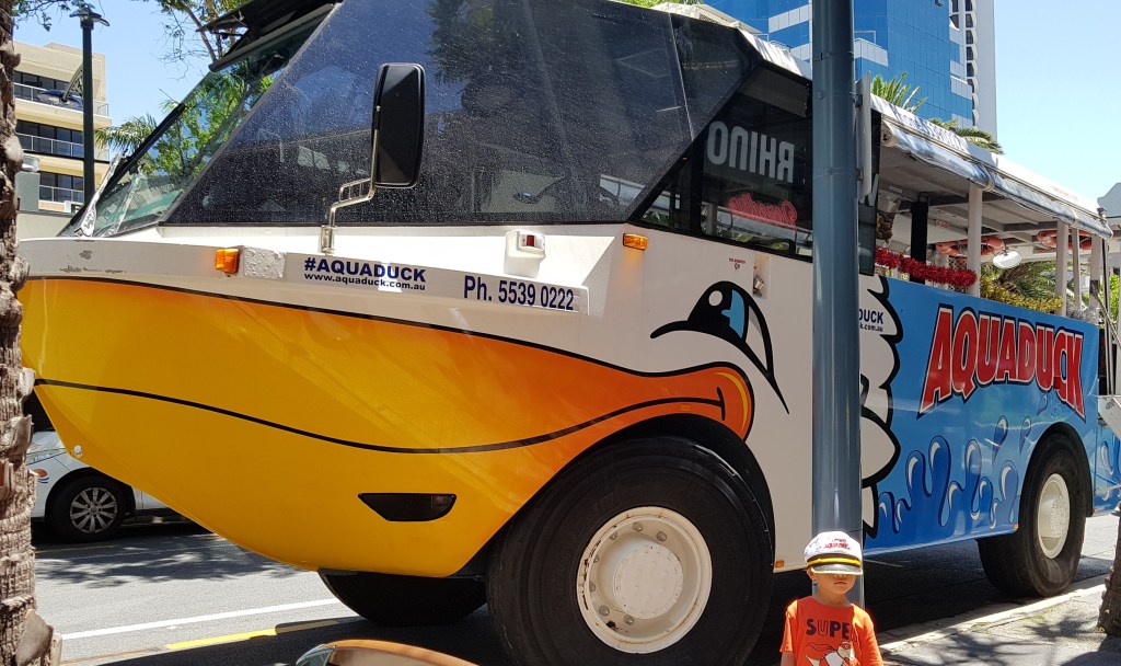 All aboard the amphibian adventure ! Yes, you read right but we didn’t hop at the back of a frog or a newt. We hopped on board the iconic scenic AQUADUCK ride, and experienced Gold Coast city on land and water tour in one – how awesome, isn’t ? We wandered and waddled around Gold Coast.